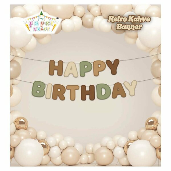 ÖZEL KESİM HAPPY BIRTHDAY RETRO KAHVE AYICIK BANNER