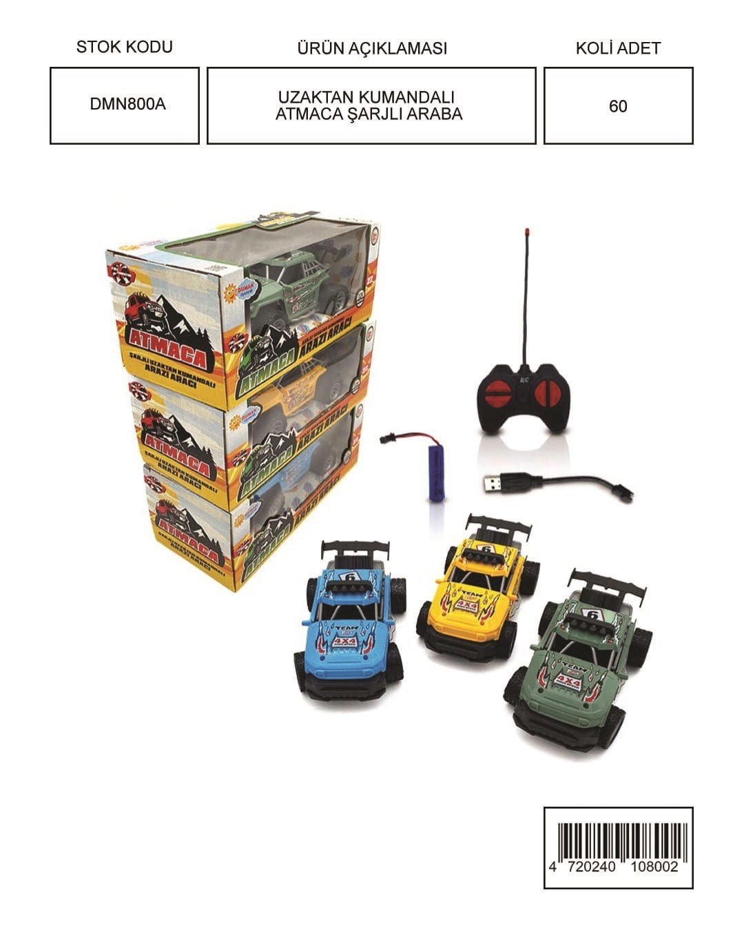 UZAKTAN KUMANDALI ATMACA ŞARJLI ARABA